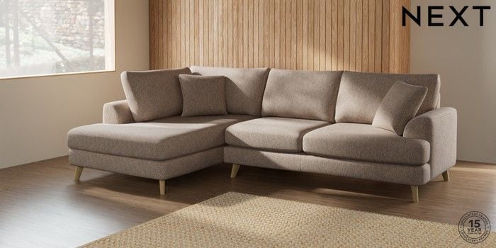 7.2.5 Buy Parker Medium Corner Chaise - Left Hand Tweedy Chenille Mid Natural Low Retro Tapered - Light from the Next UK online shop Click here to use our accessible website