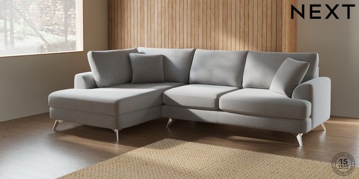 7.2.5 Buy Parker Medium Corner Chaise - Left Hand Natural Mix Light Grey High Metal - Chrome from the Next UK online shop Click here to use our accessible website