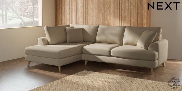 7.2.5 Buy Parker Medium Corner Chaise - Left Hand Natural Mix Light Natural Low Retro Tapered - Light from the Next UK online shop Click here to use our accessible website