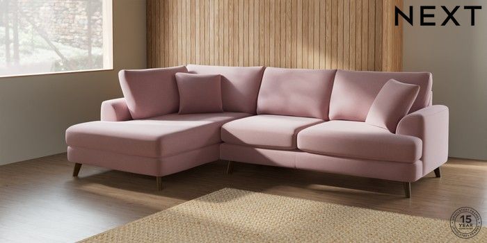 7.2.5 Buy Parker Medium Corner Chaise - Left Hand Natural Mix Light Rose Pink Low Retro Tapered - Mid from the Next UK online shop Click here to use our accessible website