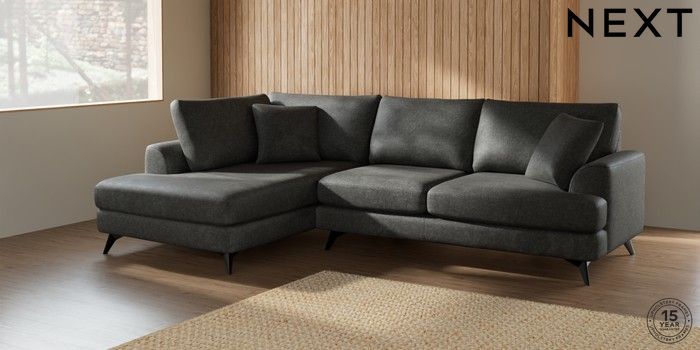 7.2.5 Buy Parker Medium Corner Chaise - Left Hand Plush Chenille Dark Grey High Metal - Black from the Next UK online shop Click here to use our accessible website