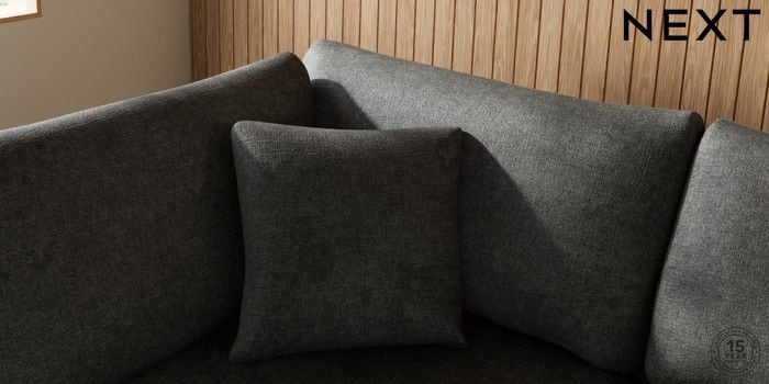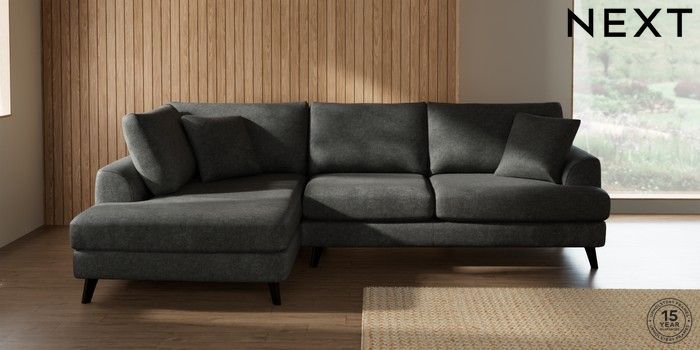 7.2.10 Buy Parker Medium Corner Chaise - Left Hand Plush Chenille Dark Grey Low Retro Tapered - Dark from the Next UK online shop Click here to use our accessible website