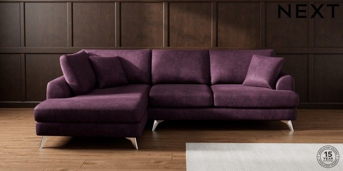 7.2.10 Buy Parker Medium Corner Chaise - Left Hand Plush Chenille Dark Plum Purple High Metal - Chrome from the Next UK online shop Click here to use our accessible website