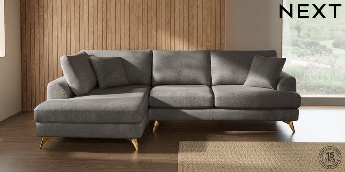 7.2.10 Buy Parker Medium Corner Chaise - Left Hand Plush Chenille Light Grey High Metal - Brass from the Next UK online shop Click here to use our accessible website