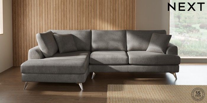 7.2.10 Buy Parker Medium Corner Chaise - Left Hand Plush Chenille Light Grey High Metal - Chrome from the Next UK online shop Click here to use our accessible website