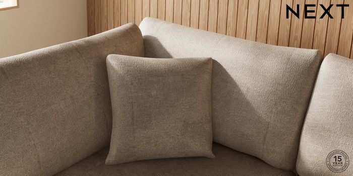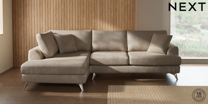 7.2.10 Buy Parker Medium Corner Chaise - Left Hand Plush Chenille Light Natural High Metal - Chrome from the Next UK online shop Click here to use our accessible website