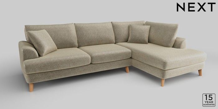6.12.1 Buy Parker Large Corner Chaise - Right Hand Plush Chenille Light Natural Low Retro Tapered - Light from the Next UK online shop Click here to use our accessible website