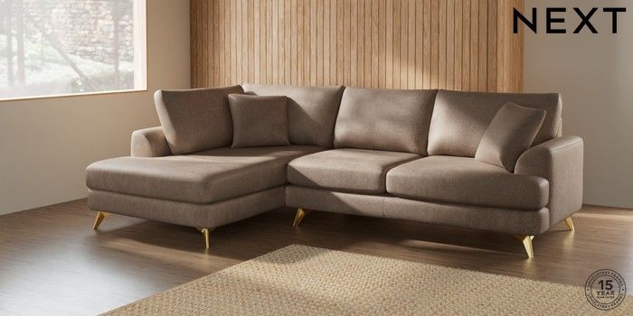 7.2.5 Buy Parker Medium Corner Chaise - Left Hand Plush Chenille Mid Natural High Metal - Brass from the Next UK online shop Click here to use our accessible website