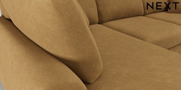 6.12.1 Buy Parker Medium Corner Chaise - Left Hand Luxe Chenille Honey Yellow Low Retro Tapered - Light from the Next UK online shop Click here to use our accessible website