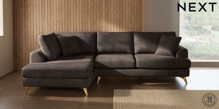 7.2.10 Buy Parker Medium Corner Chaise - Left Hand Plush Chenille Mink Brown High Metal - Brass from the Next UK online shop Click here to use our accessible website