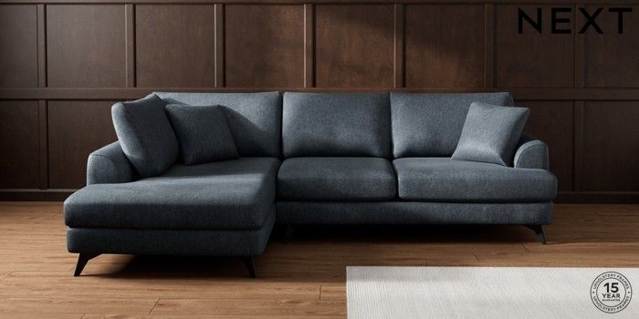 7.2.10 Buy Parker Medium Corner Chaise - Left Hand Plush Chenille Slate Blue High Metal - Black from the Next UK online shop Click here to use our accessible website
