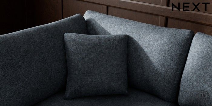 7.2.10 Buy Parker Medium Corner Chaise - Left Hand Plush Chenille Slate Blue High Metal - Chrome from the Next UK online shop Click here to use our accessible website
