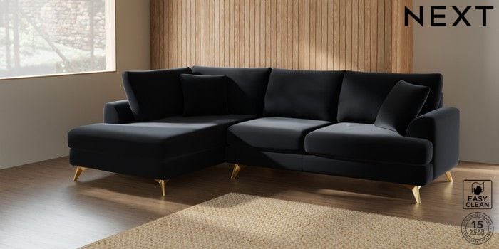 7.2.5 Buy Parker Medium Corner Chaise - Left Hand Plush Velvet Easy Clean Charcoal Grey High Metal - Brass from the Next UK online shop Click here to use our accessible website