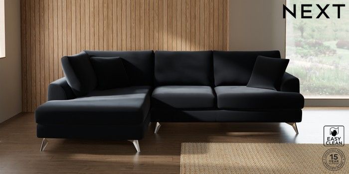 7.3.1 Buy Parker Medium Corner Chaise - Left Hand Plush Velvet Easy Clean Charcoal Grey High Metal - Chrome from the Next UK online shop Click here to use our accessible website