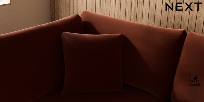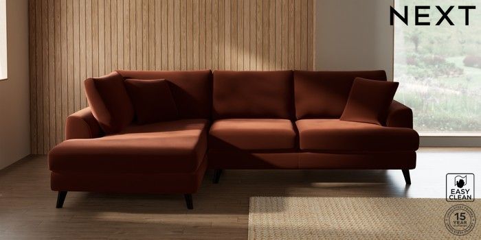 7.3.1 Buy Parker Medium Corner Chaise - Left Hand Plush Velvet Easy Clean Ginger Orange Low Retro Tapered - Dark from the Next UK online shop Click here to use our accessible website