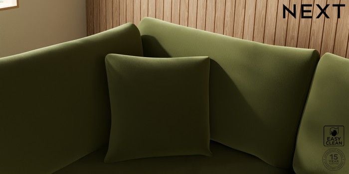 7.3.1 Buy Parker Medium Corner Chaise - Left Hand Plush Velvet Easy Clean Mid Olive Green High Metal - Chrome from the Next UK online shop Click here to use our accessible website