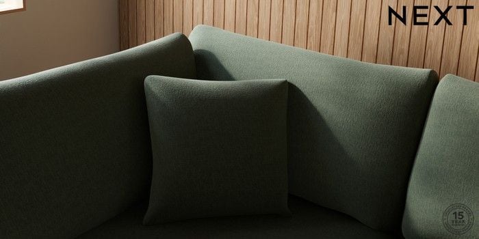 7.3.1 Buy Parker Medium Corner Chaise - Left Hand Relaxed Linen Look Dark Green Low Retro Tapered - Mid from the Next UK online shop Click here to use our accessible website