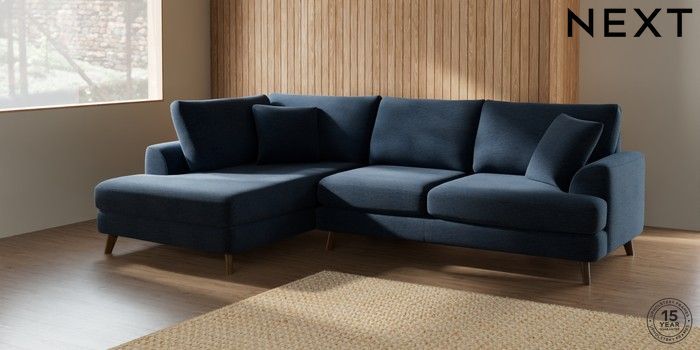 7.0.3 Buy Parker Medium Corner Chaise - Left Hand Ripple Chenille Dark Blue Low Retro Tapered - Mid from the Next UK online shop Click here to use our accessible website