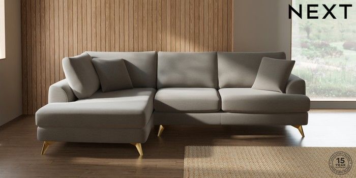 7.2.10 Buy Parker Medium Corner Chaise - Left Hand Ripple Chenille Light Natural High Metal - Brass from the Next UK online shop Click here to use our accessible website