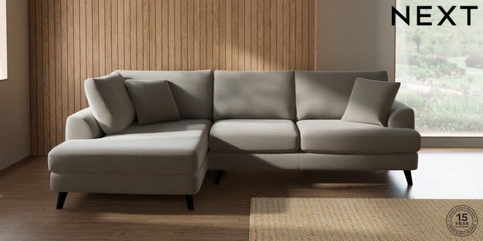 7.2.10 Buy Parker Medium Corner Chaise - Left Hand Ripple Chenille Light Natural Low Retro Tapered - Dark from the Next UK online shop Click here to use our accessible website