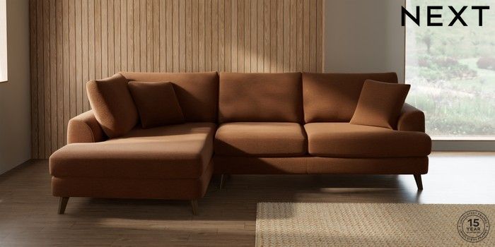7.2.10 Buy Parker Medium Corner Chaise - Left Hand Ripple Chenille Mid Rust Brown Low Retro Tapered - Mid from the Next UK online shop Click here to use our accessible website