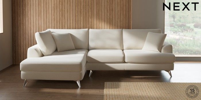 7.2.10 Buy Parker Medium Corner Chaise - Left Hand Ripple Chenille Oyster High Metal - Chrome from the Next UK online shop Click here to use our accessible website