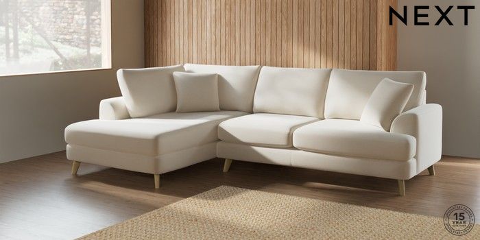 7.2.5 Buy Parker Medium Corner Chaise - Left Hand Ripple Chenille Oyster Low Retro Tapered - Light from the Next UK online shop Click here to use our accessible website