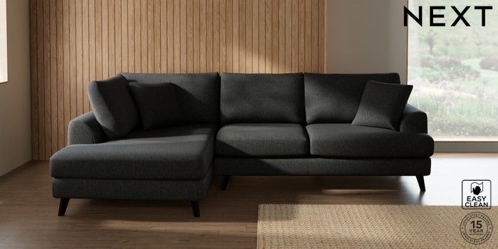 7.2.10 Buy Parker Medium Corner Chaise - Left Hand Tweedy Blend Easy Clean Charcoal Grey Low Retro Tapered - Dark from the Next UK online shop Click here to use our accessible website