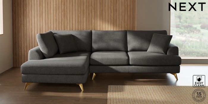7.3.1 Buy Parker Medium Corner Chaise - Left Hand Tweedy Blend Easy Clean Dark Grey High Metal - Brass from the Next UK online shop Click here to use our accessible website