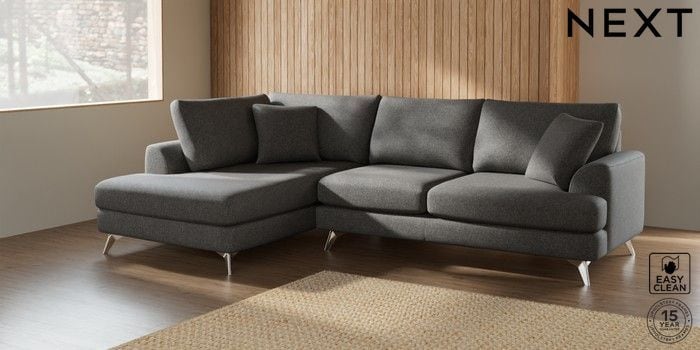 7.2.5 Buy Parker Medium Corner Chaise - Left Hand Tweedy Blend Easy Clean Dark Grey High Metal - Chrome from the Next UK online shop Click here to use our accessible website