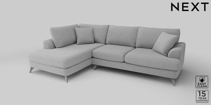 6.12.1 Buy Parker Medium Corner Chaise - Left Hand Tweedy Blend Easy Clean Light Silver Grey High Metal - Black from the Next UK online shop Click here to use our accessible website