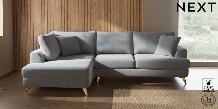 7.2.10 Buy Parker Medium Corner Chaise - Left Hand Tweedy Blend Easy Clean Light Silver Grey High Metal - Brass from the Next UK online shop Click here to use our accessible website