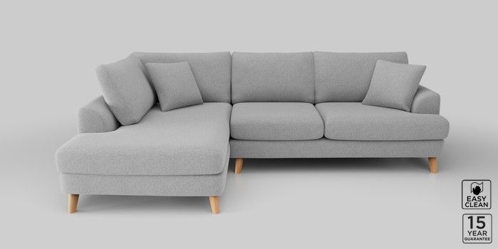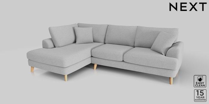 6.12.1 Buy Parker Medium Corner Chaise - Left Hand Tweedy Blend Easy Clean Light Silver Grey Low Retro Tapered - Light from the Next UK online shop Click here to use our accessible website