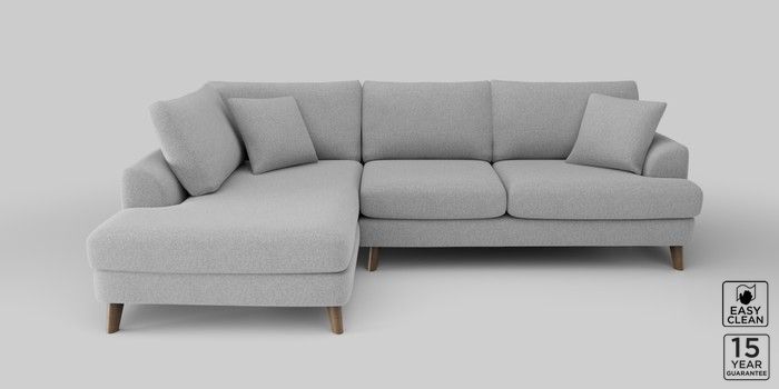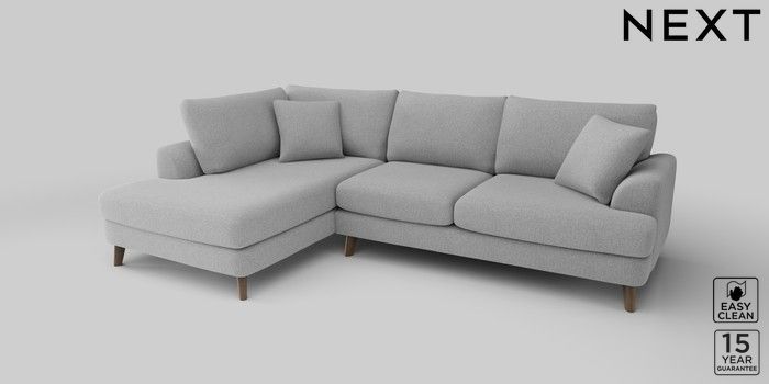 6.12.1 Buy Parker Medium Corner Chaise - Left Hand Tweedy Blend Easy Clean Light Silver Grey Low Retro Tapered - Mid from the Next UK online shop Click here to use our accessible website