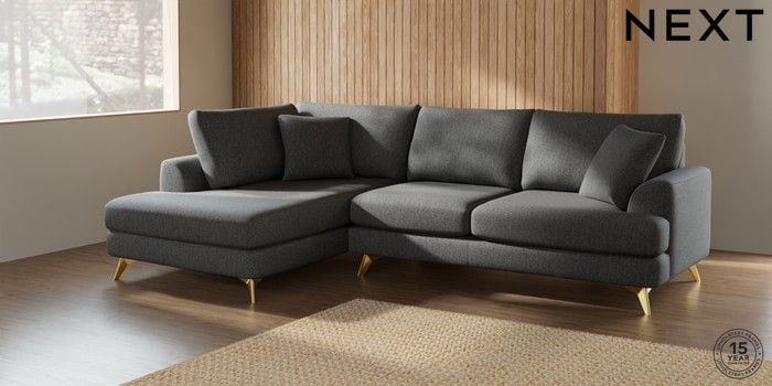 7.2.5 Buy Parker Medium Corner Chaise - Left Hand Tweedy Chenille Dark Grey High Metal - Brass from the Next UK online shop Click here to use our accessible website
