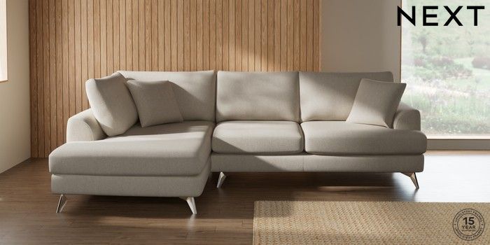 7.2.10 Buy Parker Medium Corner Chaise - Left Hand Tweedy Chenille Oyster High Metal - Chrome from the Next UK online shop Click here to use our accessible website