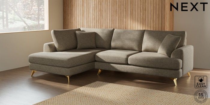 7.2.5 Buy Parker Medium Corner Chaise - Left Hand Woven Chenille Easy Clean Mid Natural High Metal - Brass from the Next UK online shop Click here to use our accessible website