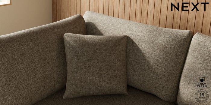 7.2.10 Buy Parker Medium Corner Chaise - Left Hand Woven Chenille Easy Clean Mid Natural Low Retro Tapered - Mid from the Next UK online shop Click here to use our accessible website
