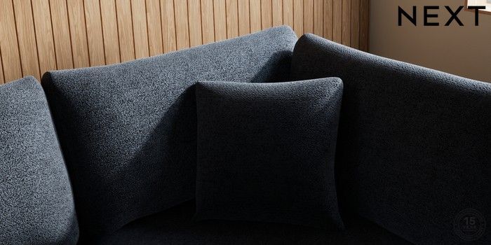 7.2.10 Buy Parker Medium Corner Chaise - Right Hand Boucle Chenille Dark Slate Blue Low Retro Tapered - Mid from the Next UK online shop Click here to use our accessible website