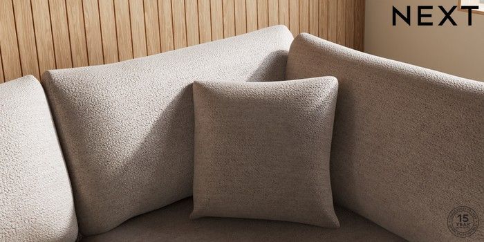 7.3.1 Buy Parker Medium Corner Chaise - Right Hand Boucle Chenille Light Natural Low Retro Tapered - Dark from the Next UK online shop Click here to use our accessible website