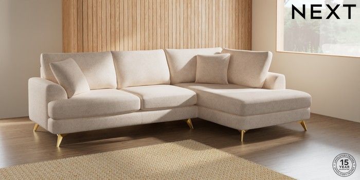 7.2.5 Buy Parker Medium Corner Chaise - Right Hand Boucle Chenille Oyster High Metal - Brass from the Next UK online shop Click here to use our accessible website