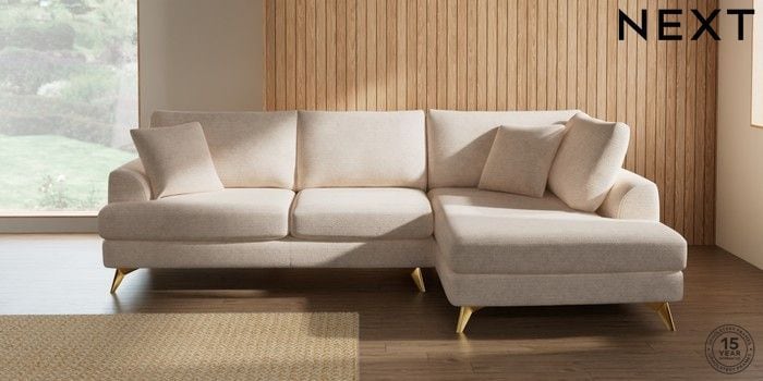7.2.10 Buy Parker Medium Corner Chaise - Right Hand Boucle Chenille Oyster High Metal - Brass from the Next UK online shop Click here to use our accessible website