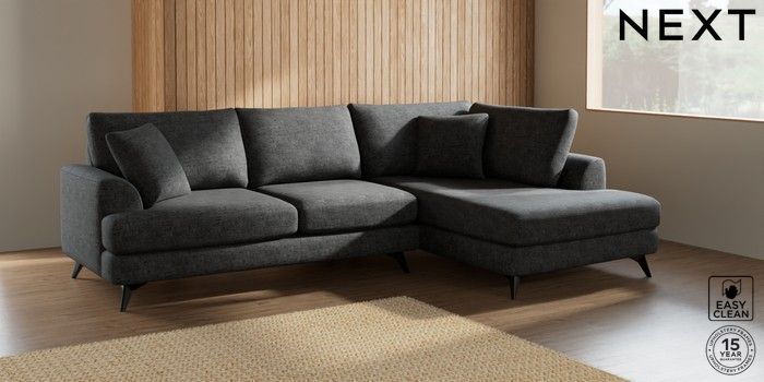 7.2.5 Buy Parker Medium Corner Chaise - Right Hand Boucle Weave Easy Clean Charcoal Grey High Metal - Black from the Next UK online shop Click here to use our accessible website