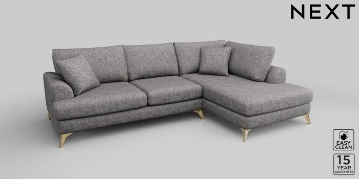 6.12.1 Buy Parker Medium Corner Chaise - Right Hand Chunky Boucle Easy Clean Light Grey High Metal - Brass from the Next UK online shop Click here to use our accessible website