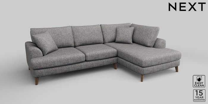 6.12.1 Buy Parker Medium Corner Chaise - Right Hand Chunky Boucle Easy Clean Light Grey Low Retro Tapered - Mid from the Next UK online shop Click here to use our accessible website