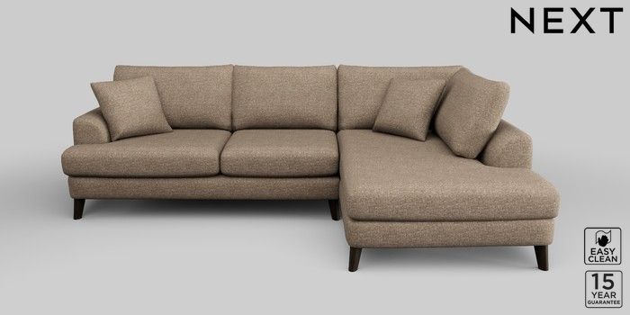 6.10.9 Buy Parker Medium Corner Chaise - Right Hand Chunky Boucle Easy Clean Mid Natural Low Retro Tapered - Dark from the Next UK online shop Click here to use our accessible website