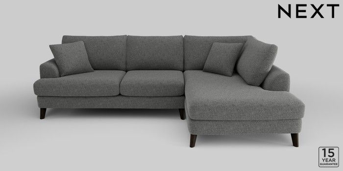 6.10.9 Buy Parker Medium Corner Chaise - Right Hand Chunky Chenille Dark Grey Low Retro Tapered - Dark from the Next UK online shop Click here to use our accessible website