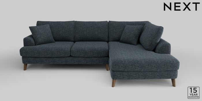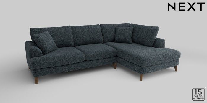 6.10.9 Buy Parker Medium Corner Chaise - Right Hand Chunky Chenille Dark Navy Blue Low Retro Tapered - Mid from the Next UK online shop Click here to use our accessible website
