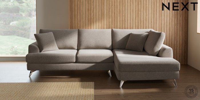 7.2.10 Buy Parker Medium Corner Chaise - Right Hand Chunky Chenille Light Dove High Metal - Chrome from the Next UK online shop Click here to use our accessible website