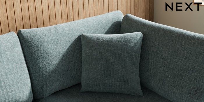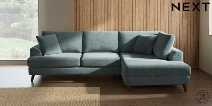 7.2.4 Buy Parker Medium Corner Chaise - Right Hand Chunky Chenille Light Teal Green Low Retro Tapered - Mid from the Next UK online shop Click here to use our accessible website